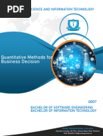 3. A firm manufactures two types of Product A and B and sells them at a profit of Rs. 2 on type A and Rs. 3 on type B. Each product is processed on two machines M1 M 2. and M1 Type A requires 1 minute of processing time on and M 2 . Type B requires 1 minute on M1 2 minutes on and 1 minute on M 2 . Machine M 1 is available for not more than 6 hours 40 minutes while machine M 2 is available for 10 hours during any working day. Formulate the problem as a LPP so as to maximize the profit. 4. 5. 6. 7. 8. Explain an algorithm for solving a transportation problem. What is the probability of choosing any 3 or any diamond or both? What is decision tree? and explain Bellmans principle of optimality. Distinguish between mathematical models and simulation models. What are the components of decision-making? PART B (4 15 = 60 marks) Answer any FOUR questions. 9. Discuss the role and scope of quantitative methods for scientific decisions in business management. Discuss their limitations in relation to rural management. 11. Solve the following question using graphical method : Max. Z = 9x + 10y