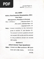 M.B.A. (PM) DEGREE EXAMINATION, MAY 2009. First Semester MANAGEMENT CONCEPTS (2005 onwards) Time : Three hours Maximum : 100 marks SECTION A (5 8 = 40 marks) Answer any FIVE questions. 1. 2. 3. 4. 5. 6. 7. Define the term management. How does it differ from administration? Describe the evolution of management thought. Explain the process involved in making decisions. What are the differences between delegation of authority and decentralization of authority? What is meant by Span of Control? What factors that decide the Span of control? What is leadership? Explain the qualities of a good leadership. Discuss the important requisites for making any control system effective in application.