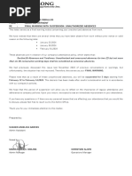 This letter is a formal written warning and a write-up, with the possibility of further write-ups