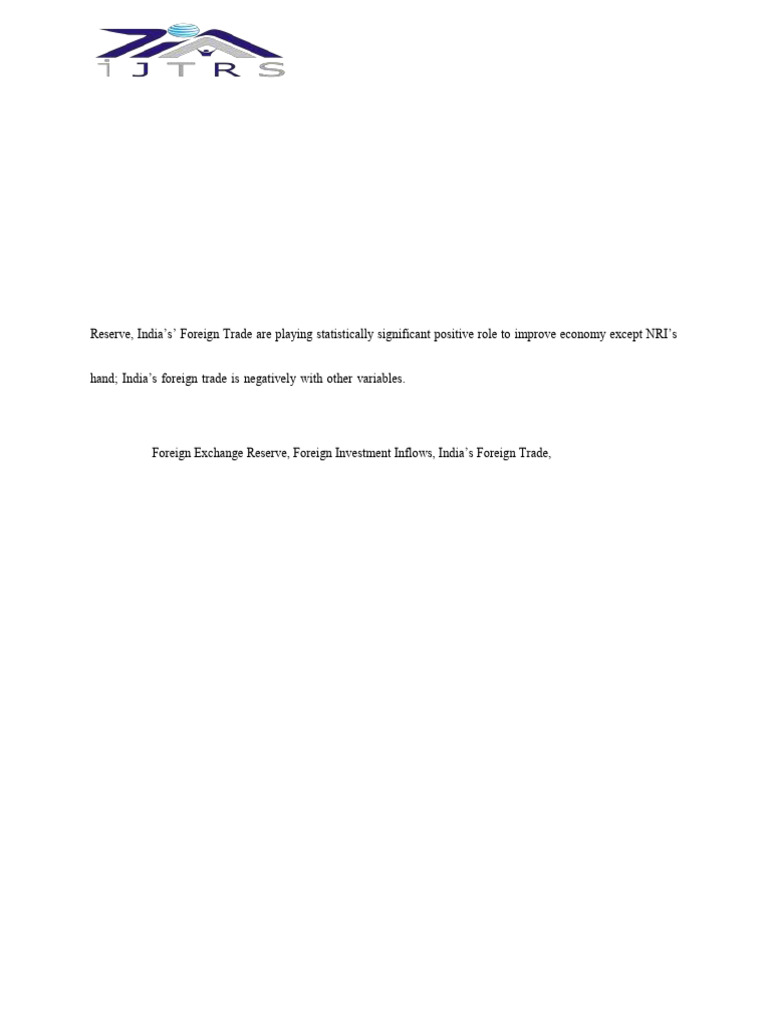Keywords: Foreign Exchange Reserve, Foreign Investment Inflows, India’s Foreign Trade, NRI Deposits,