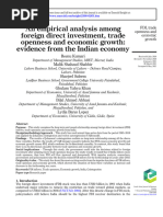 Zakariya M and Shakoor M(2013), in their study, examine the impact of trade openness on foreign direct investment
