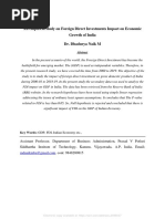 countries. The main objective of present study is to see the impact of Foreign Investment on Indian economy. The