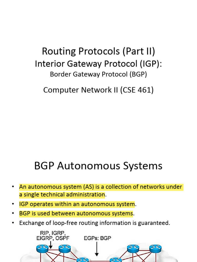– Examples of IGP are: RIP, OSPF, and EIGRP