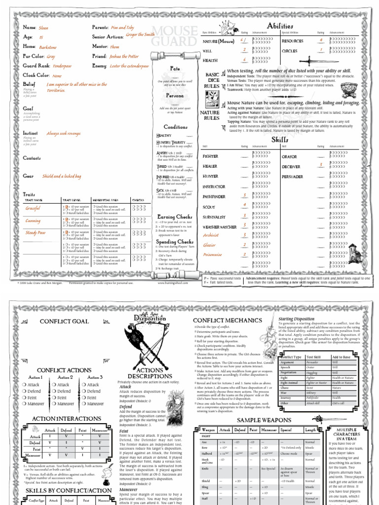 © 2008 Luke Crane and Ben Morgan. Permission granted to make copies for personal use. www.burningwheel.com F= Fail; failed tests. less than the rank. Learning a new skill requires: tests equal to Nature rank.