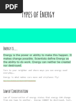 The Three Types of Energy and their examples.