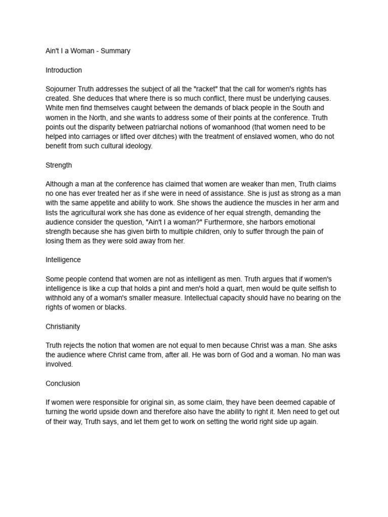 audience consider the question, "Ain't I a woman?" Furthermore, she harbors emotional
