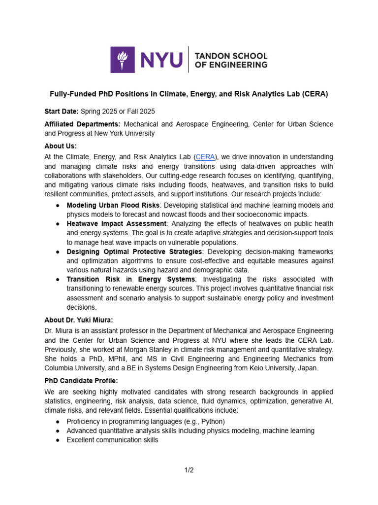 Fully-Funded PhD Positions in Climate, Energy, and Risk Analytics Lab (CERA)