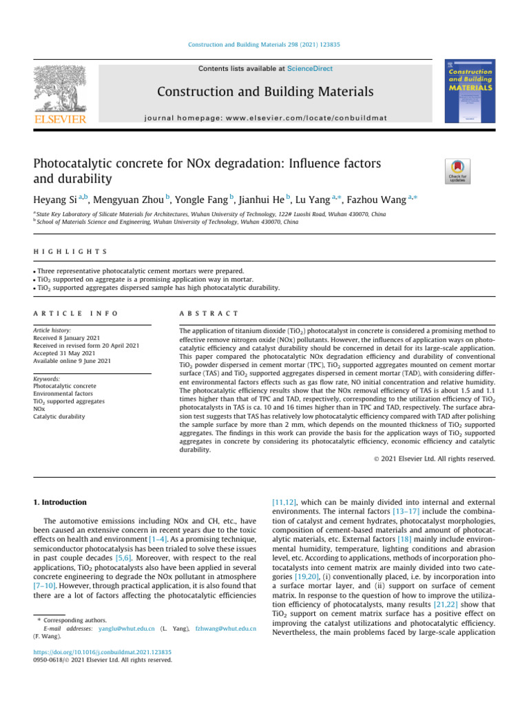 concrete engineering to degrade the NOx pollutant in atmosphere gories [19,20], (i) conventionally placed, i.e. by incorporation into