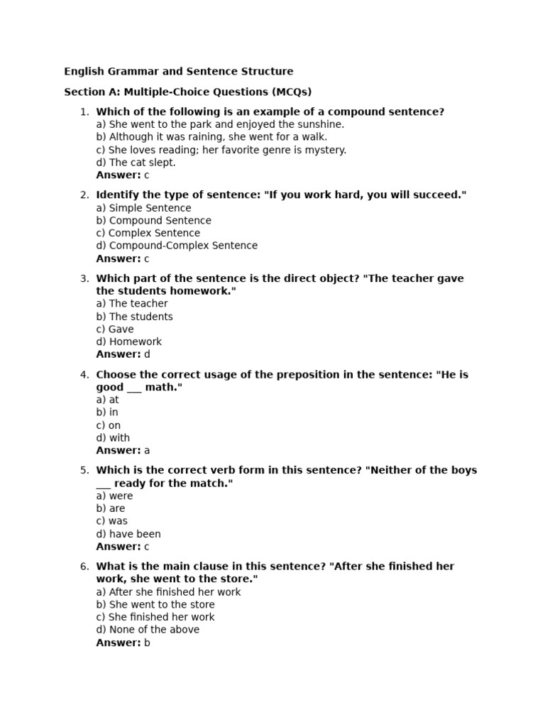4. Choose the correct usage of the preposition in the sentence: "He is
