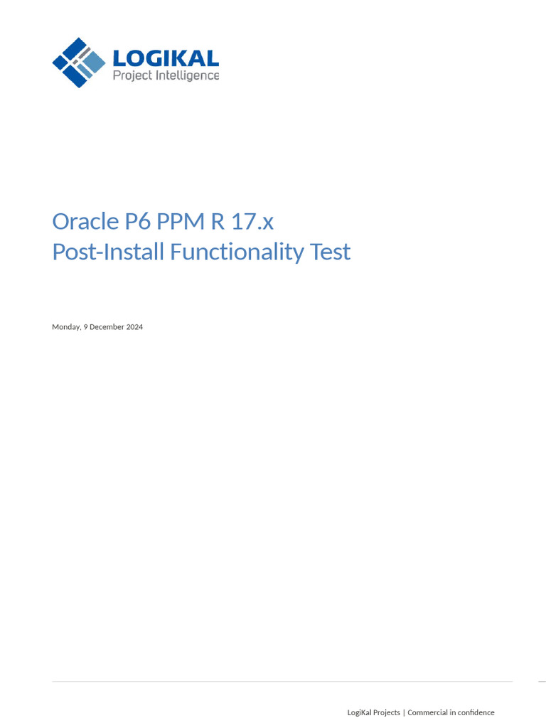 This document is to be used by LogiKal consultants and Client Staff to validate the functionality of the installation of Primavera