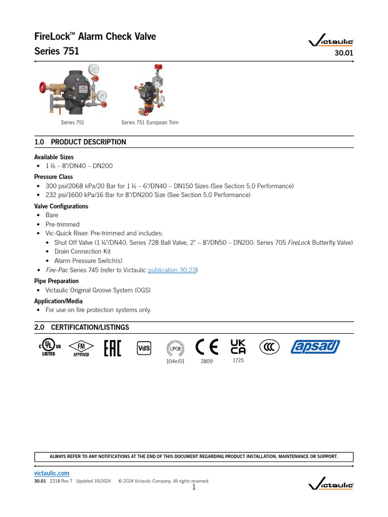 30.01 2218 Rev T Updated 10/2024 © 2024 Victaulic Company. All rights reserved.