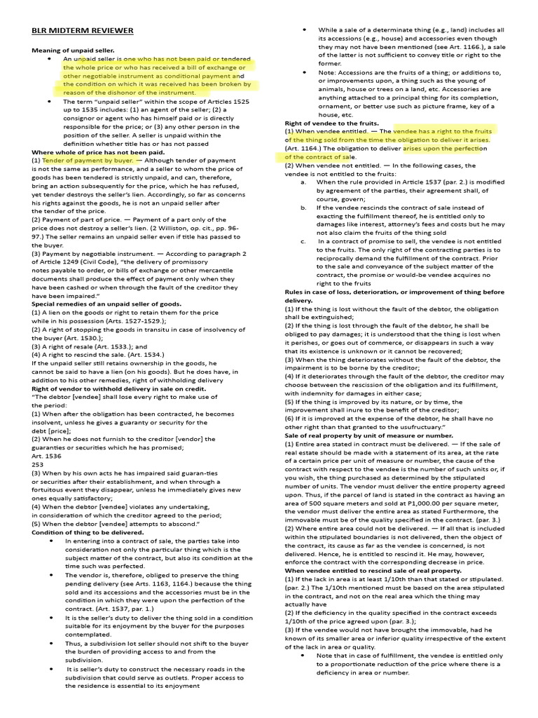 BLR MIDTERM REVIEWER • While a sale of a determinate thing (e.g.