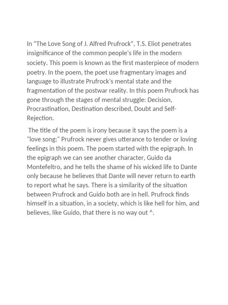 In “The Love Song of J. Alfred Prufrock”, T.S.