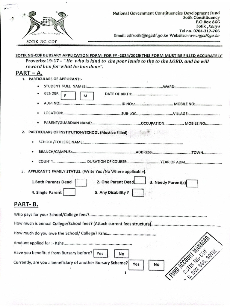 SOTIK NG-CDF BURSAR’ CATION FOR! R_FY -2024/2¢ BE FILLED At Y