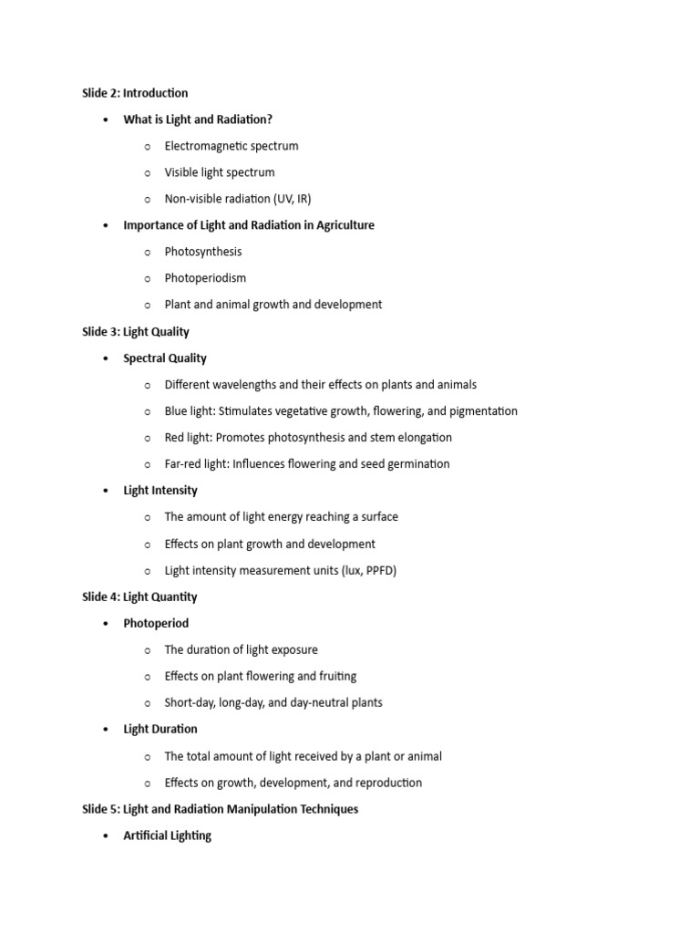 • Importance of Light and Radiation in Agriculture