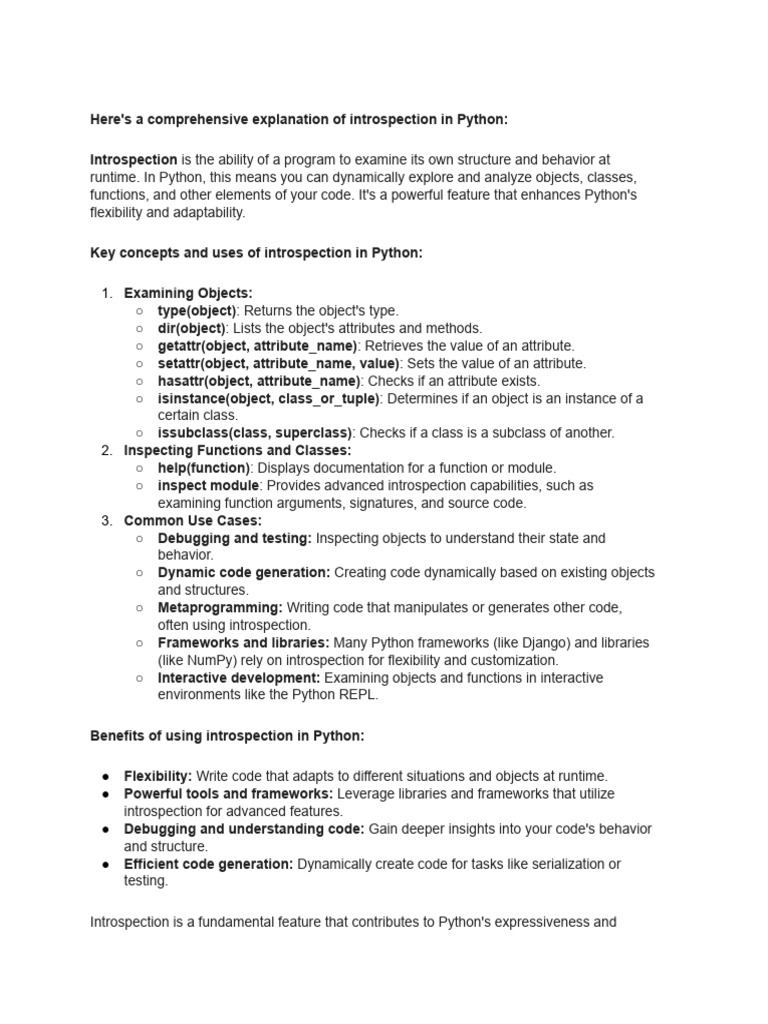Here's a comprehensive explanation of introspection in Python:
