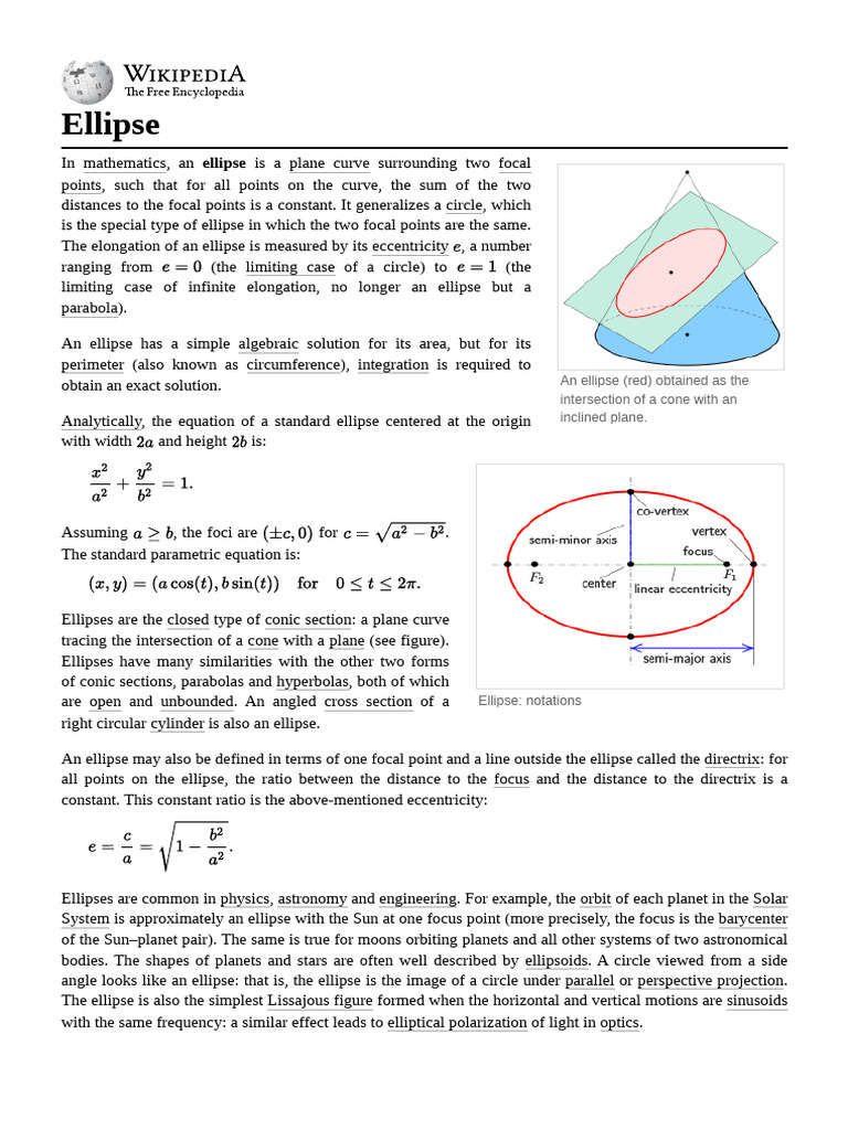 Weisstein, Eric W. "Ellipse" ([Link] MathWorld.