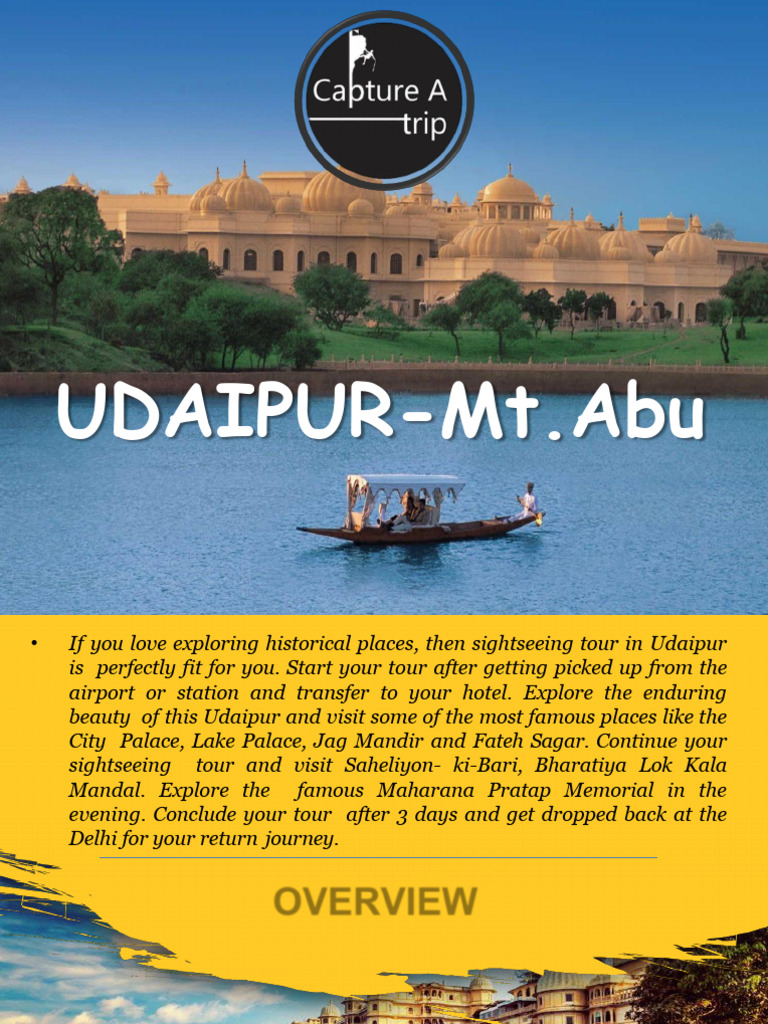 • If you love exploring historical places, then sightseeing tour in Udaipur