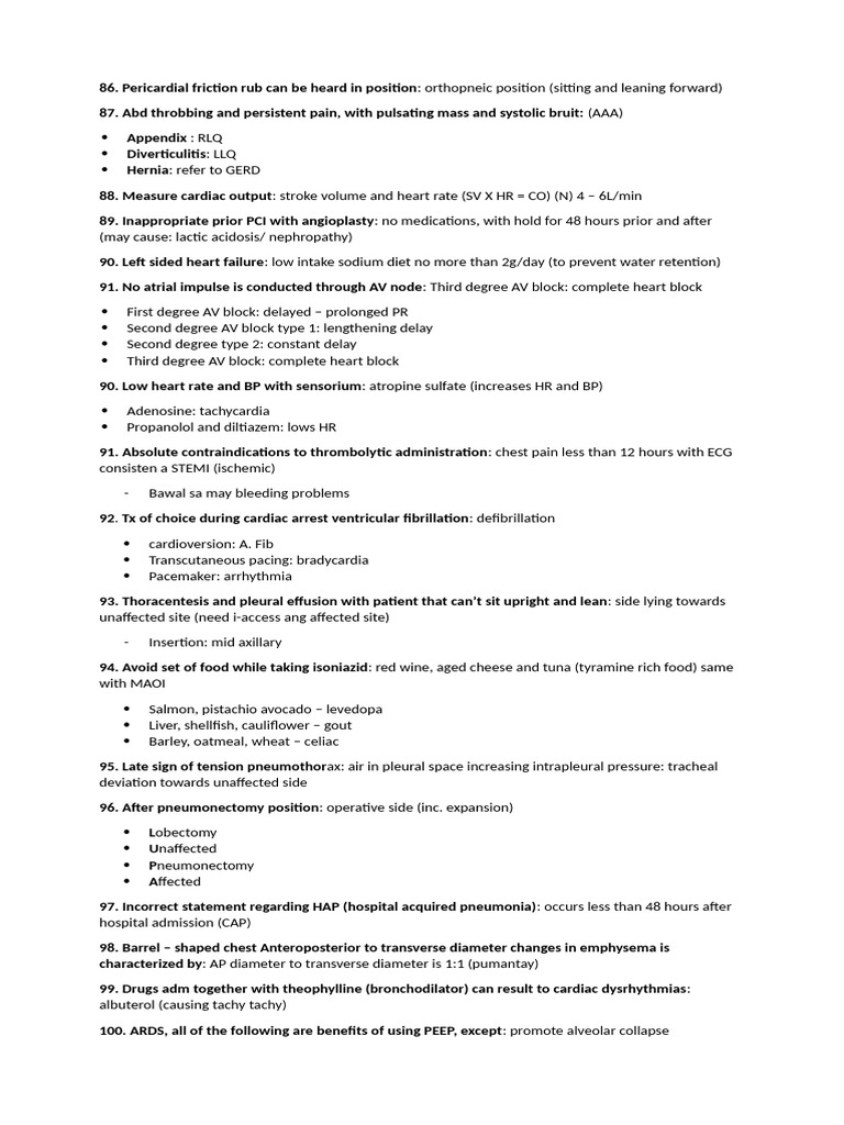 88. Measure cardiac output: stroke volume and heart rate (SV X HR = CO) (N) 4 – 6L/min