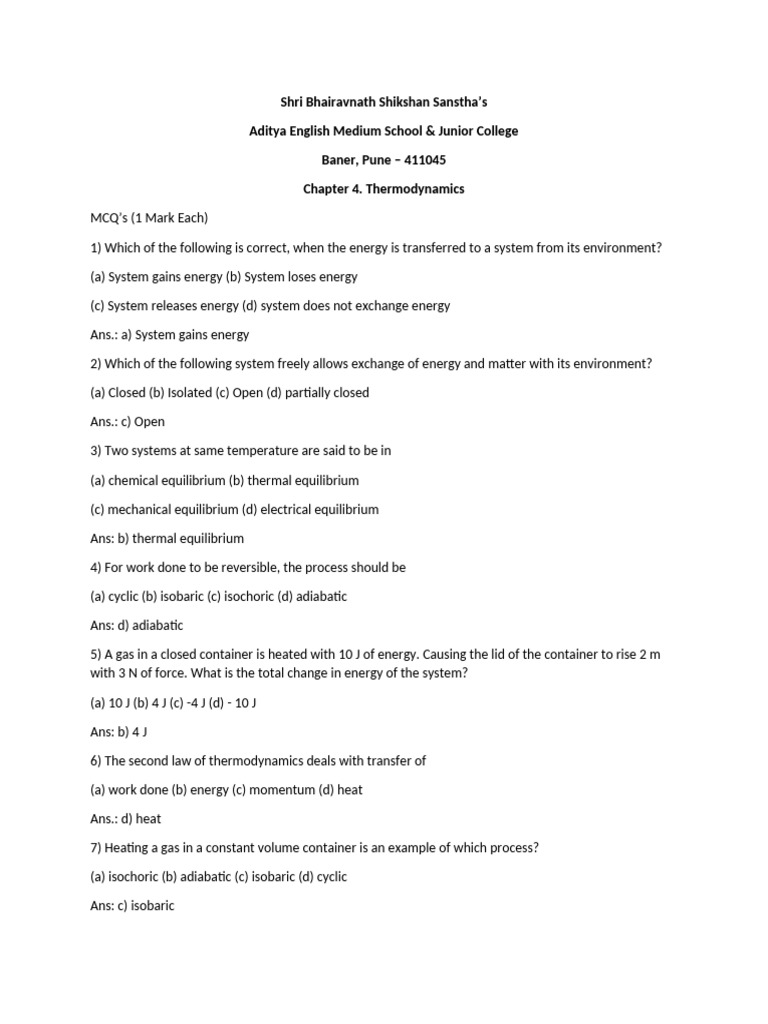 1) State first law of thermodynamics and derive the relation between the change in internal