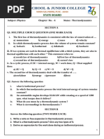 12) A cylinder containing one gram molecule of the gas was compressed adiabatically until its