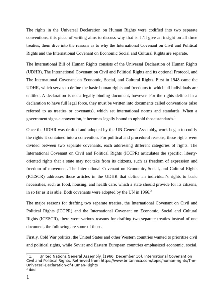 treaties, them dive into the reasons as to why the International Covenant on Civil and Political