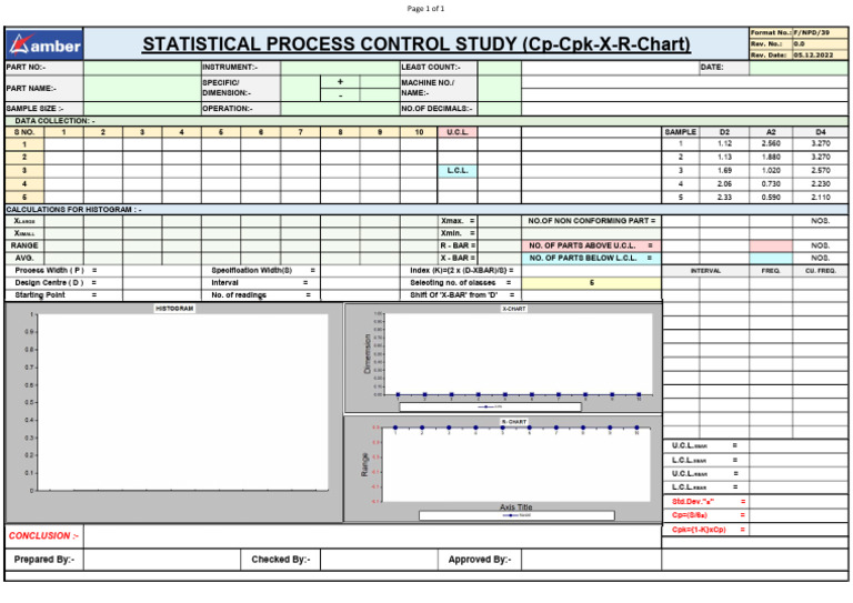 STATISTICAL PROCESS CONTROL STUDY (Cp-Cpk-X-R-Chart) Rev. No.:
