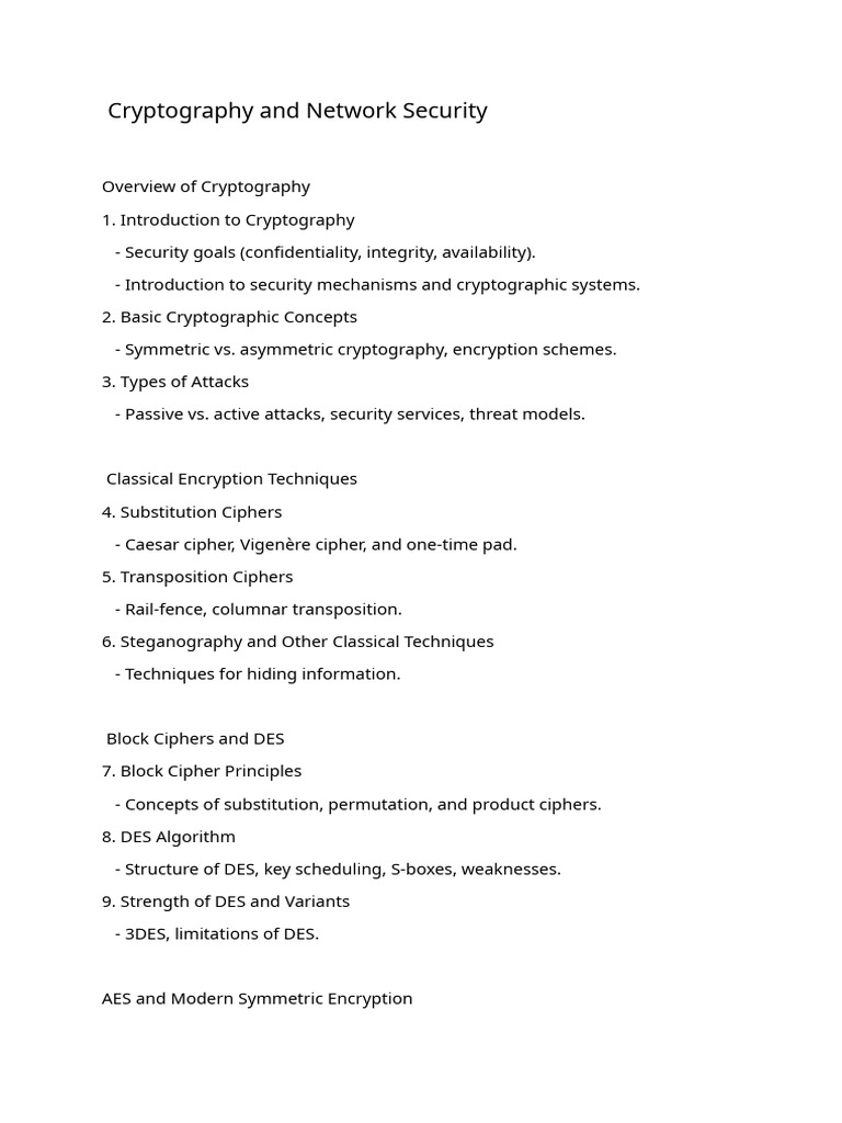 - Concepts of substitution, permutation, and product ciphers.