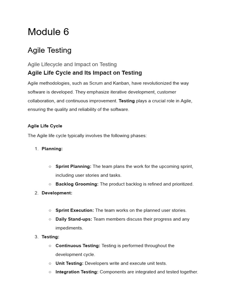 collaboration, and continuous improvement.Testingplays a crucial role in Agile,
