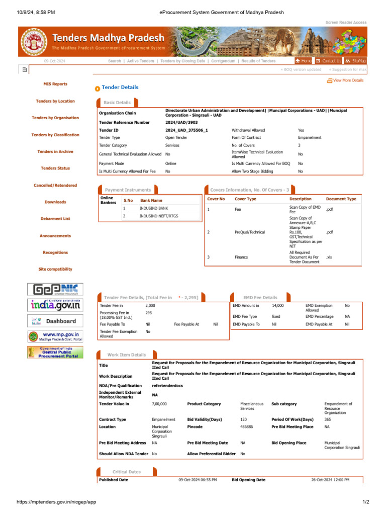 10/9/24, 8:58 PM eProcurement System Government of Madhya Pradesh