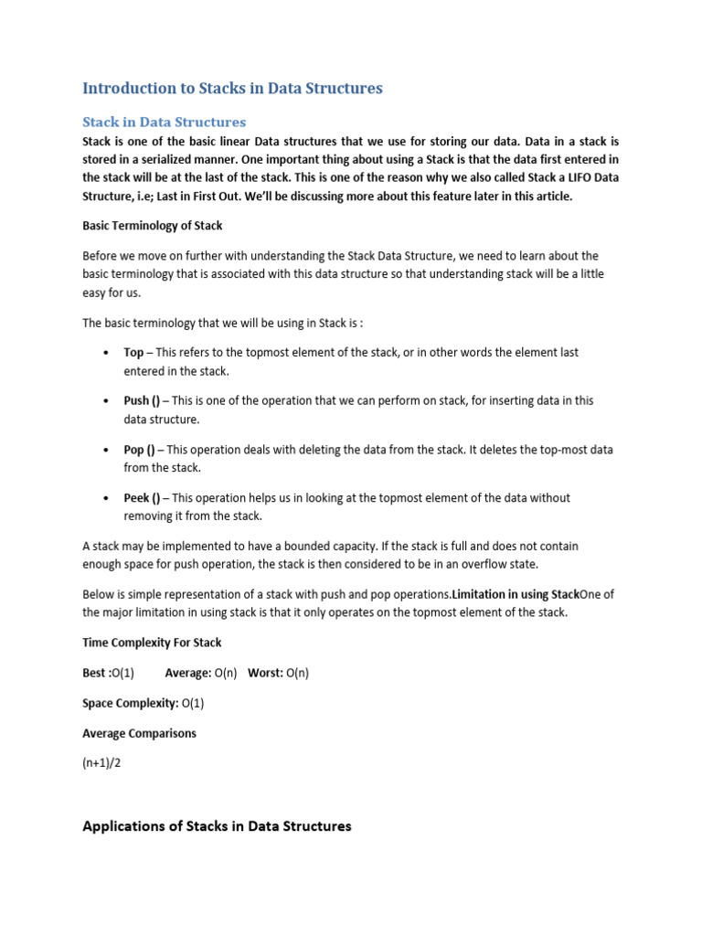 Applications of Stacks in Data Structures