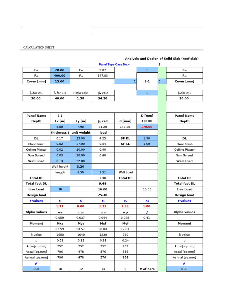 Solid Slab Design Calculation Sheet