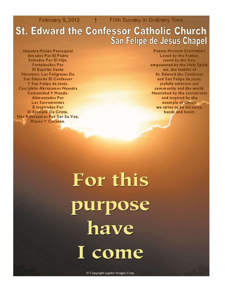 PARISH MISSION STATEMENT Loved by the Father, saved by the Son, empowered by the Holy Spirit, we, the faithful of St. Edward the Confessor and San Felipe de Jess, joyfully embrace our community and the world. Nourished by the sacraments and inspired by the example of Christ, we strive to be his voice, hands and heart.