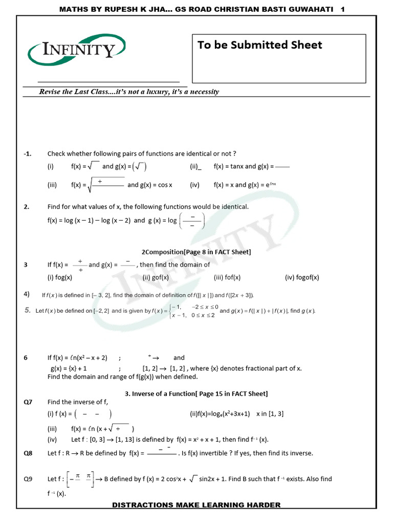 3. Inverse of a Function[ Page 15 in FACT Sheet]