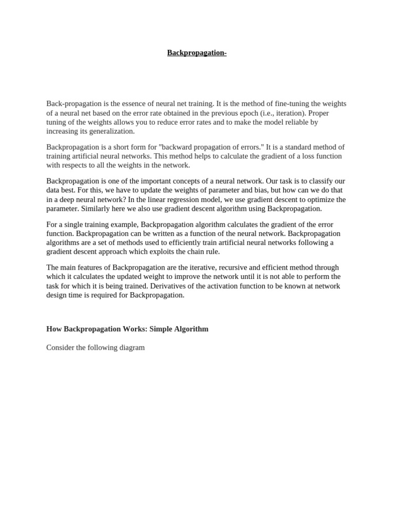 ● Backpropagation is a short form for "backward propagation of errors." It is a standard