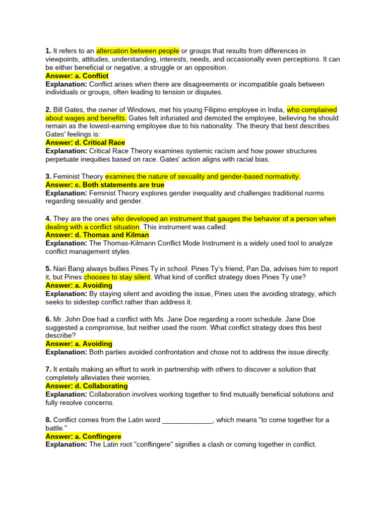 8. Conflict comes from the Latin word _____________, which means "to come together for a