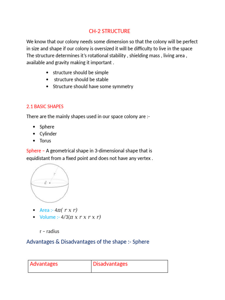 Advantages & Disadvantages of the shape :- Sphere