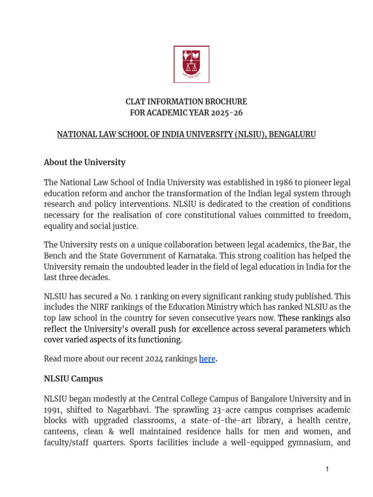 NATIONAL LAW SCHOOL OF INDIA UNIVERSITY (NLSIU), BENGALURU