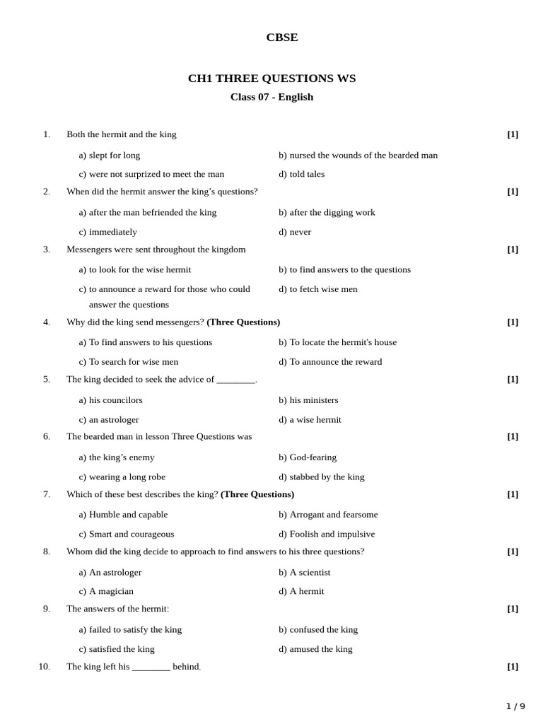27. The king wanted to know answers to three questions to ________. [1]