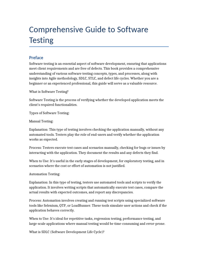 insights into Agile methodology, SDLC, STLC, and defect life cycles. Whether you are a