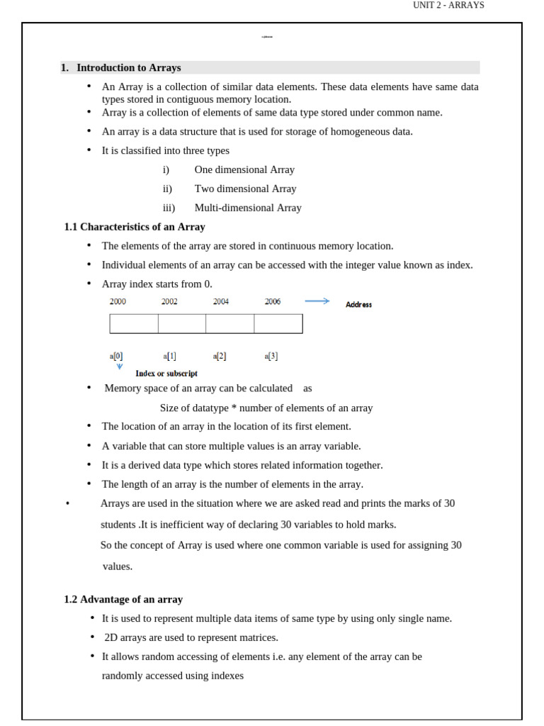 UNIT 2 - ARRAYS
