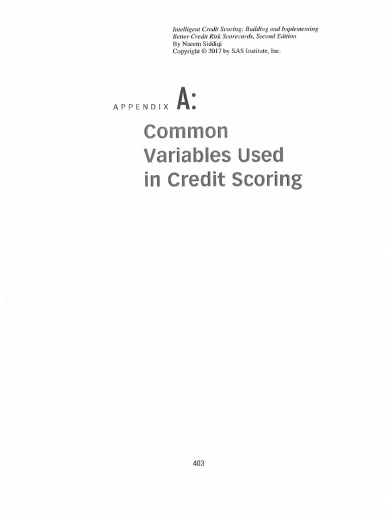 404APPEUDIX A: COMMON VARIABLES USED IN CREDIT SCORING < 405