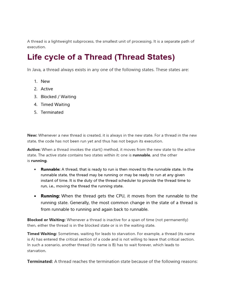 Active: When a thread invokes the start() method, it moves from the new state to the active