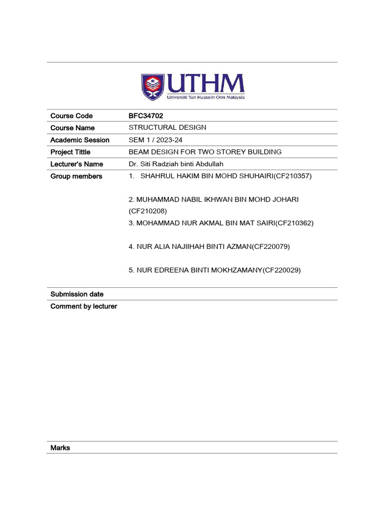 2. To guide student, calculate the shear force and bending moment of the particular beam.