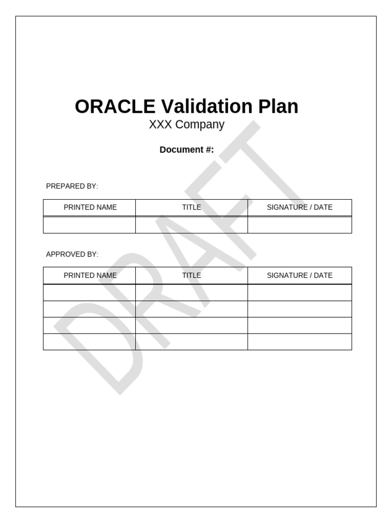 ORACLE Validation Plan Overview