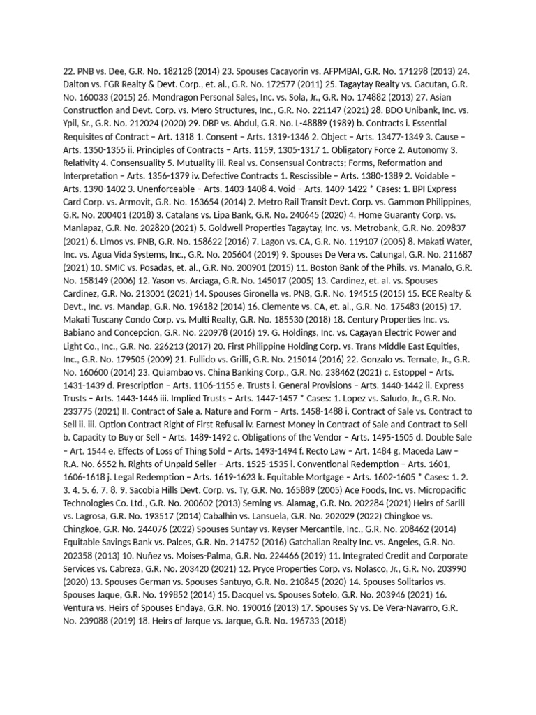 Ypil, Sr., G.R. No. 212024 (2020) 29. DBP vs. Abdul, G.R. No. L-48889 (1989) b. Contracts i. Essential