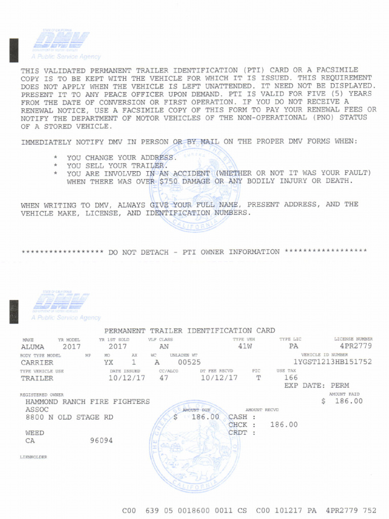 PERMANENT TRAILER IDENTIFICATTON CARD