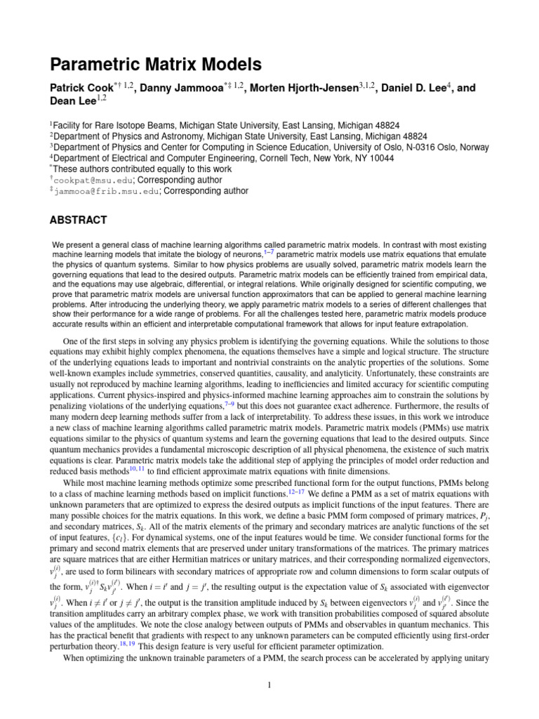 governing equations that lead to the desired outputs. Parametric matrix models can be efficiently trained from empirical data,