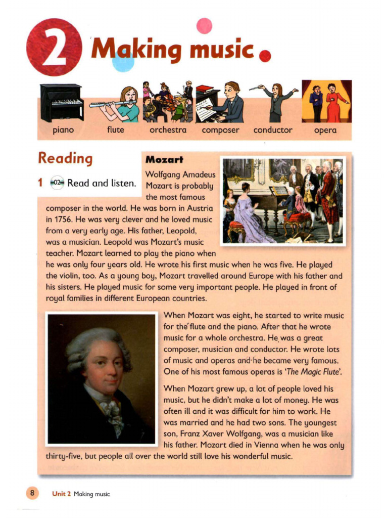1 4% Read and listen. Mozart is probably