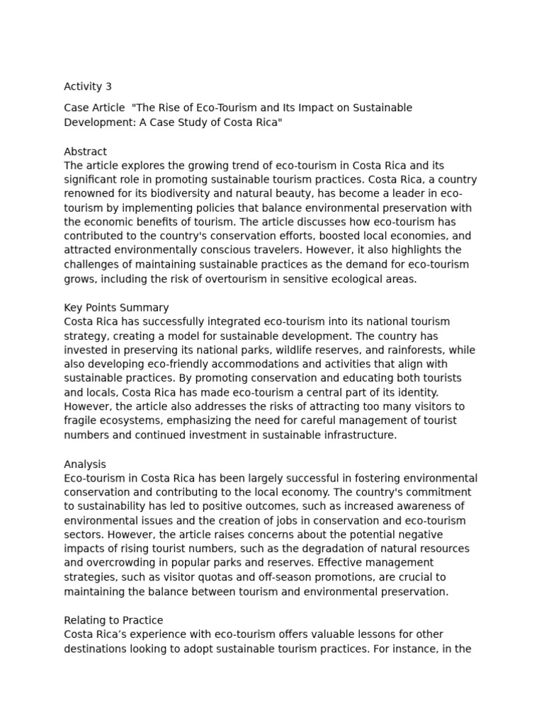 Case Article "The Rise of Eco-Tourism and Its Impact on Sustainable